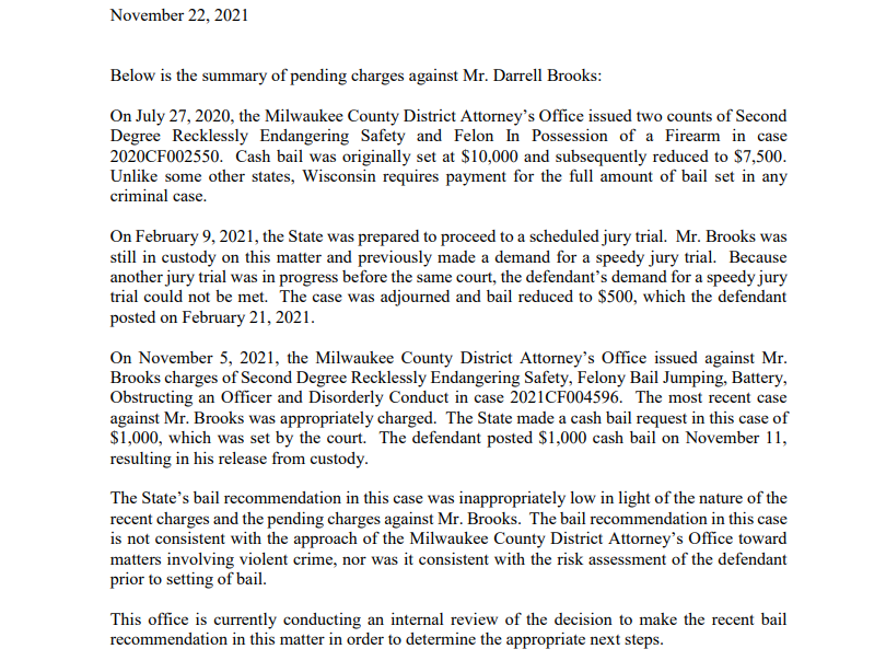 Following the parade crash Milwaukee County prosecutors came under scrutiny for setting Brooks bail for that first November arrest arrest at 1000 which the suspect apparently posted two. Prior to the parade incident he was recently released on a 1000 bond in an unrelated case.
